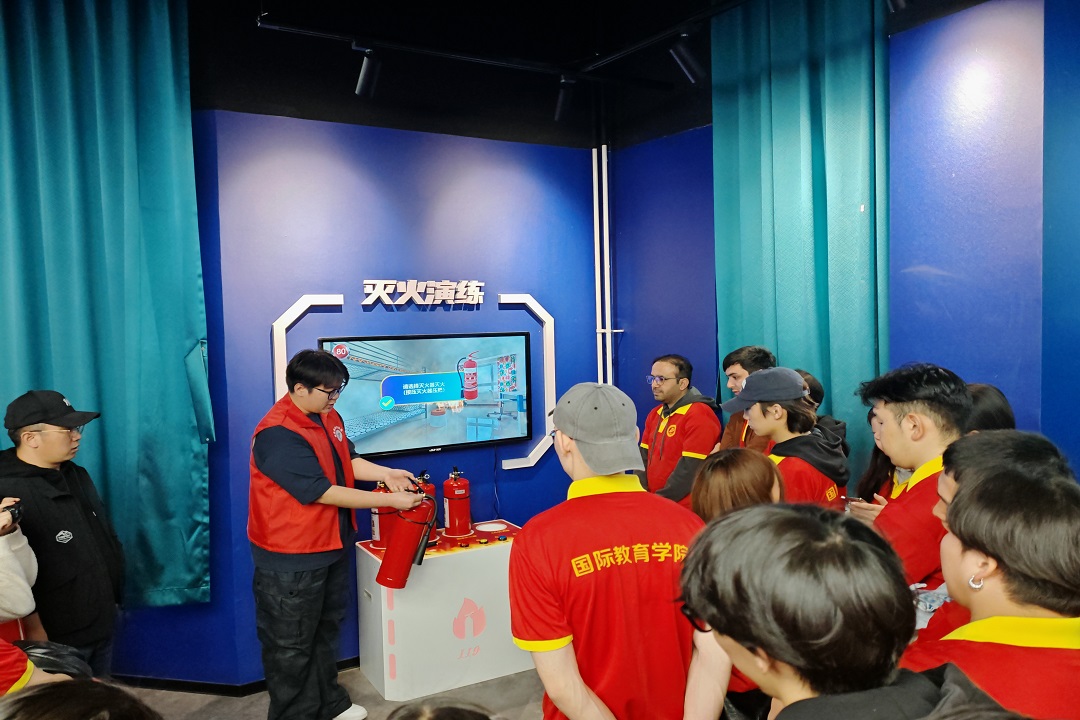 活动中,模拟职工公寓引发火情的场景,讲解员详细讲解并示范了正确的逃生方法和灭火器使用技巧,职工们积极参与实操。随后,讲解员带领职工参观安全教育展,并学习反诈、地震应急、正确使用电器等安全知识。