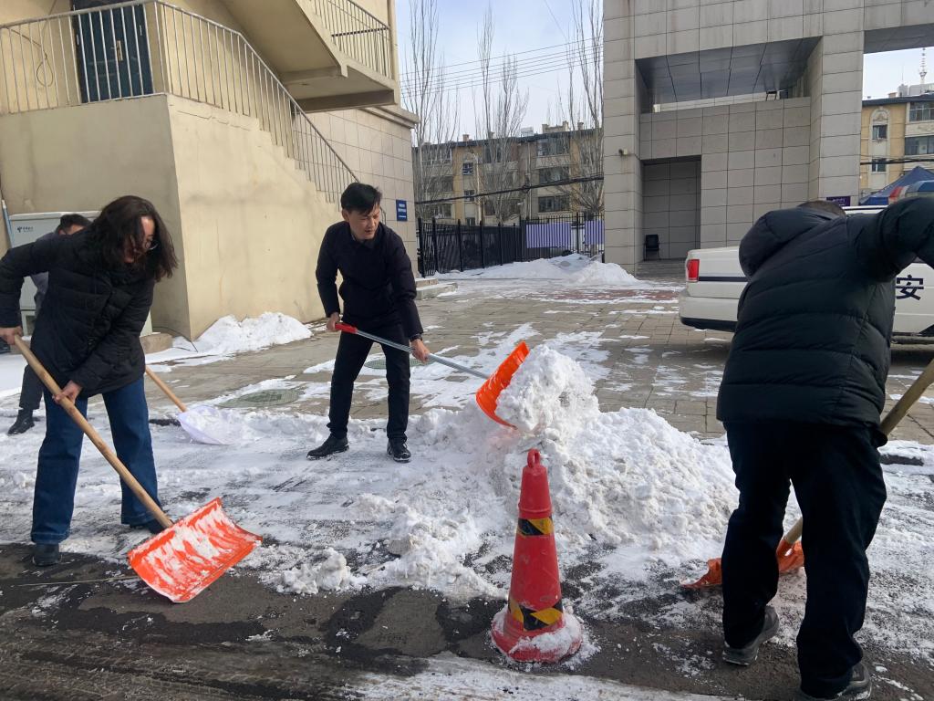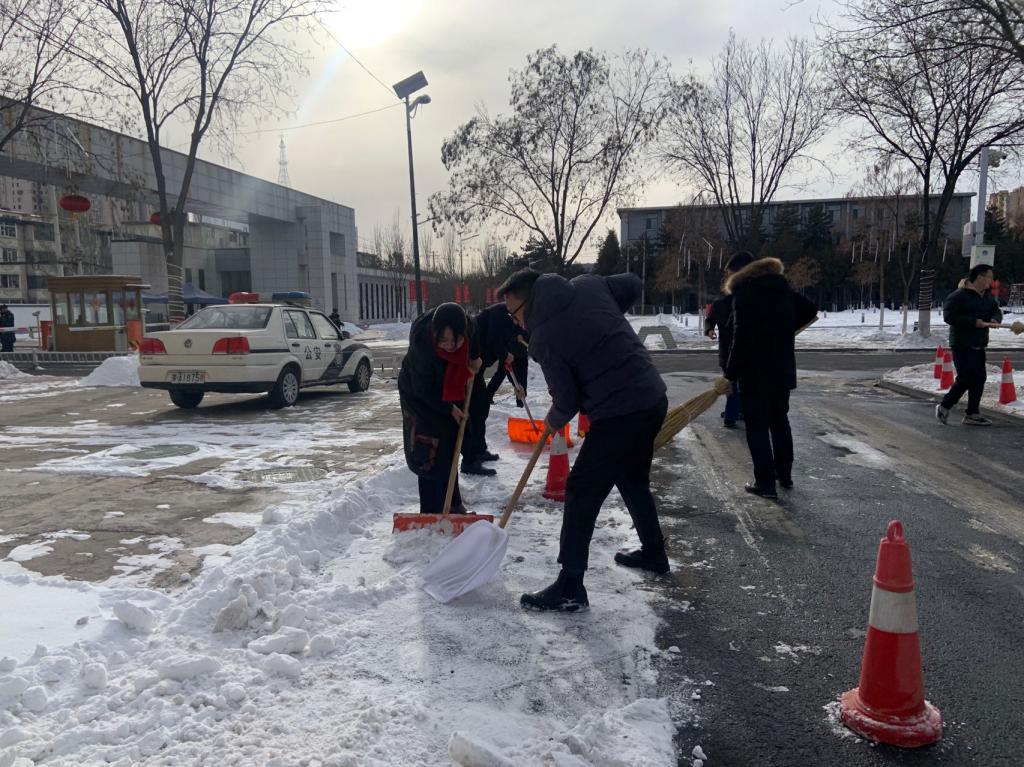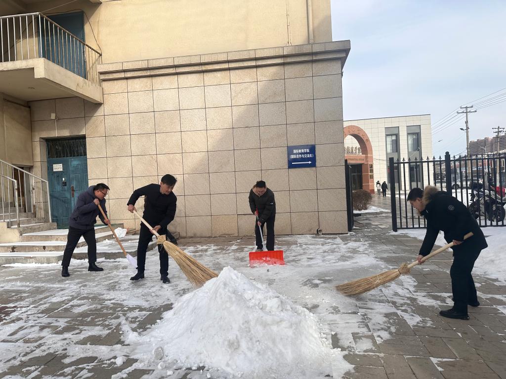 2月21日下午,机关党委太阳成集团tyc122ccvip(国际合作与交流处)党支部积极组织教工党员开展了扫雪活动。同志们拿起铁锹和扫帚,分工合作,互相配合,清理了英华楼门口和第四教学楼到英华楼主干道上的冰雪,方便师生出行,消除安全隐患。