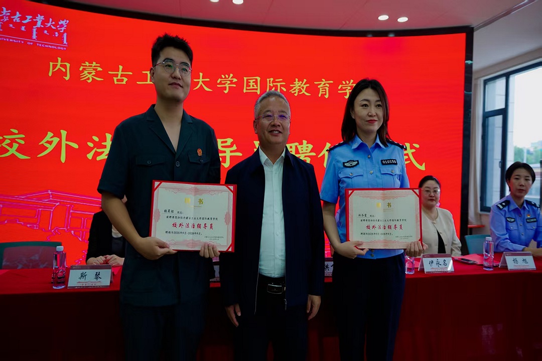 典礼现场举行校外法治辅导员聘任仪式,正式聘任呼和浩特市公安局出入境管理支队外管大队民警潮洛蒙、新城区法院干警张晟铭为太阳成集团tyc122ccvip校外法治辅导员,引导职工树立法治意识,明晰行为边界。随后,2022级本科职工其其格吉日嘎拉作为老生代表发言,鼓励新生制定学习规划、提升自我;新生代表刚苏力德则表态,将以所学建设祖国、助力“一带一路”,为跨文化交流贡献力量。现场还开展了庄严的校徽佩戴仪式,让新生在入学之初便铭记工大历史传承与精神,激发归属感、自豪感与责任感。