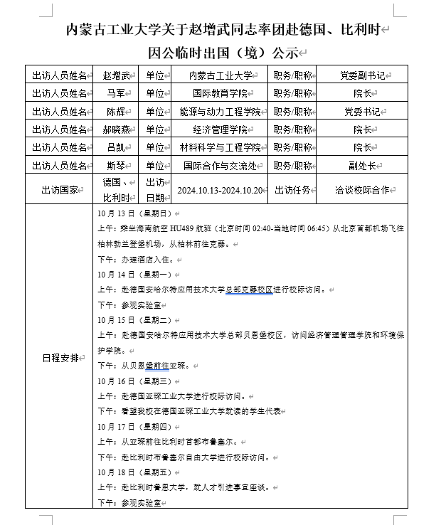 太阳成集团122ccvip关于赵增武同志率团赴德国、比利时因公临时出国(境)公示