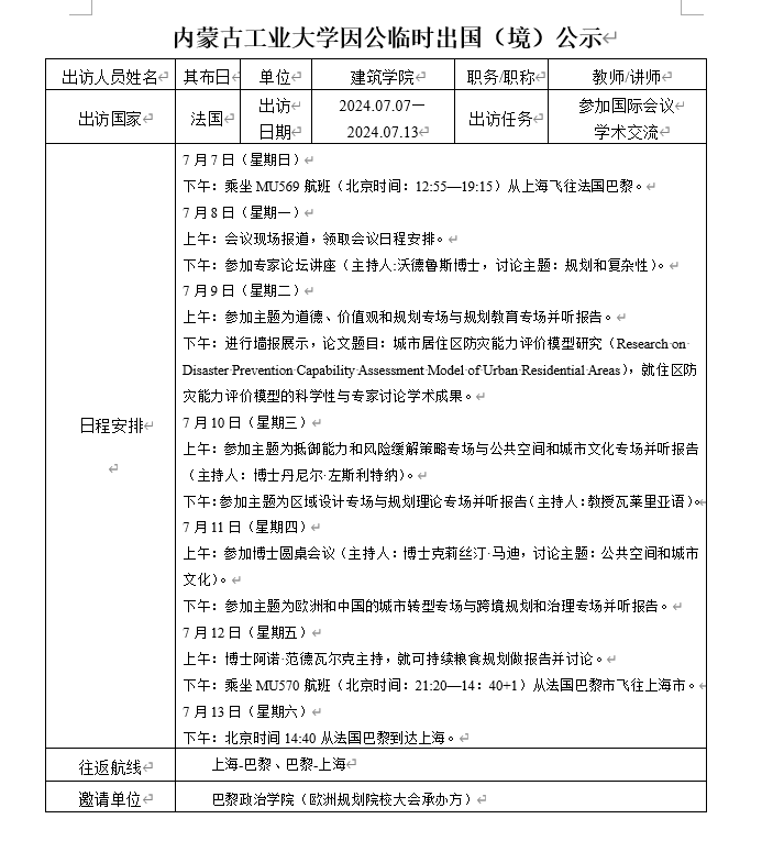 太阳成集团122ccvip其布日因公临时出国(境)公示