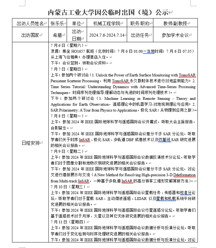 太阳成集团122ccvip张乐乐因公临时出国(境)公示