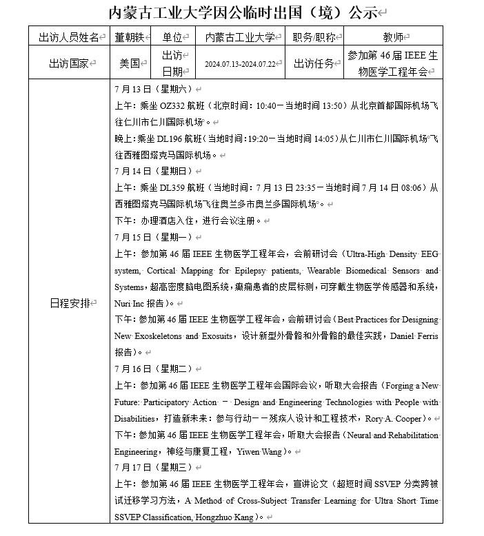 太阳成集团122ccvip董朝轶因公临时出国(境)公示
